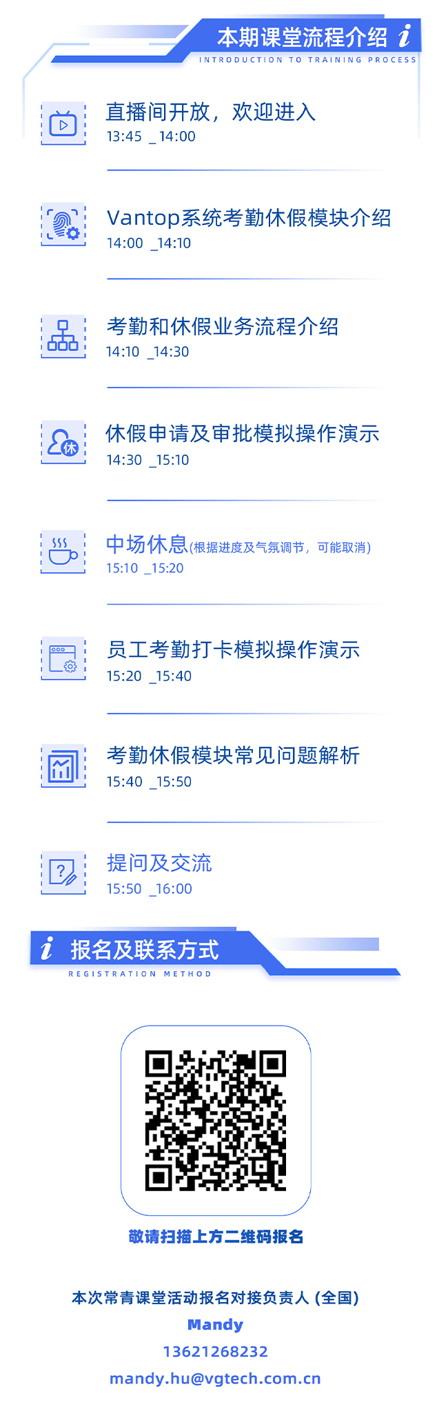 本期常青课堂是2024年第二期,将主要介绍休假考勤管理模块,包括功能、特点、界面、操作流程等……将对休假考勤管理模块的业务流程进行系统地讲解(此前两年的常青课堂主要集中于系统重要升级情况的介绍,2024年课程安排为系统操作讲解+阶段内系统升级情况介绍)需要注意的是,万古科技的Vantop系统截止5月31日,发布的版本为6.1.2)